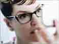 You'll have to set the desktop resolution to a 16:9 output, i. e. 1088 x 612 or 1280 x 720. 1024 x 768 is 4:3, which I assume is being stretched to fill the 16:9. Right-click the desktop (not on an icon) and select Properties, click the Settings tab and adjust the slider and Apply. If no picture shows, do not press anything, it will revert after 15 seconds. If for some reason the computer or display is incompatible with the setting you may get a scrambled picture or none at all, but typically unsupported settings aren't selectable.